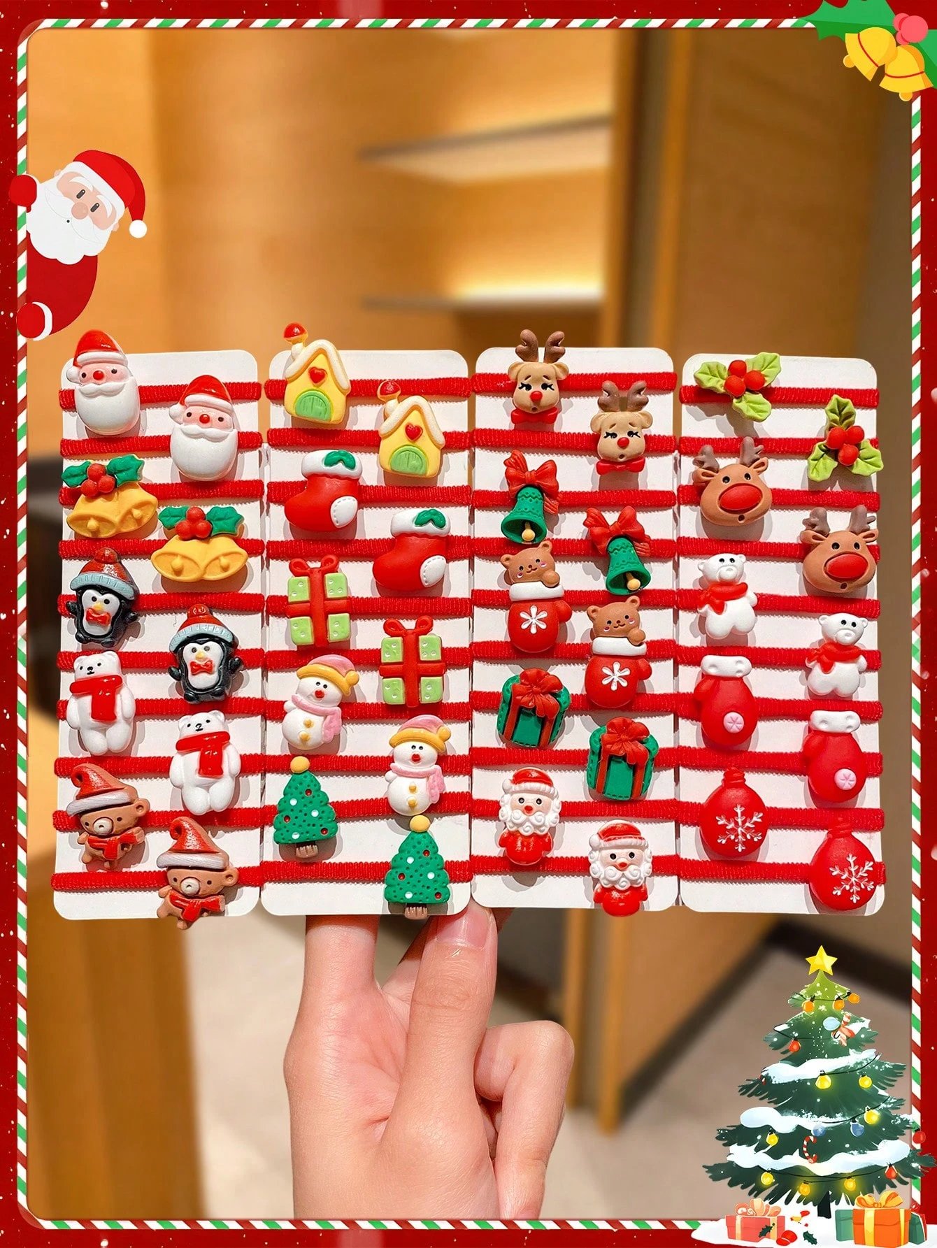 - Your chosen set of 10, 40 festive hair ties.