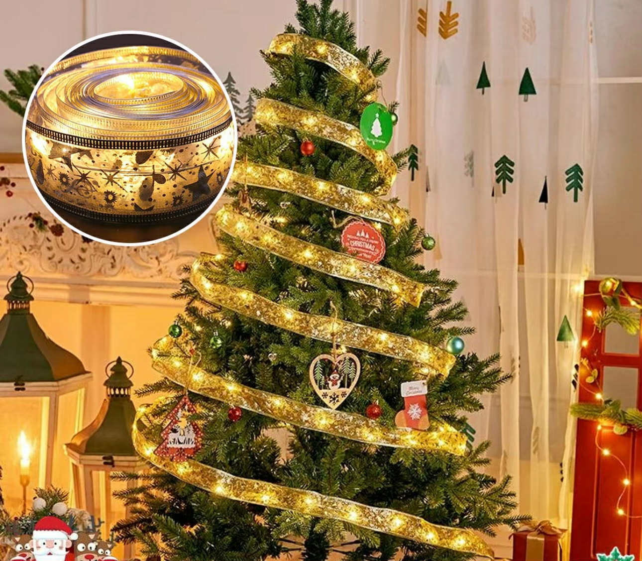Unique Christmas ribbon lights, built-in 20/50/100 LED lights, Built-in LED lights to create a unique Christmas atmosphere, very suitable for Christmas gifts, restaurants, gardens, living rooms, fireplaces, doorways, door frames and even balconies.The width of the light strip is 5cm.