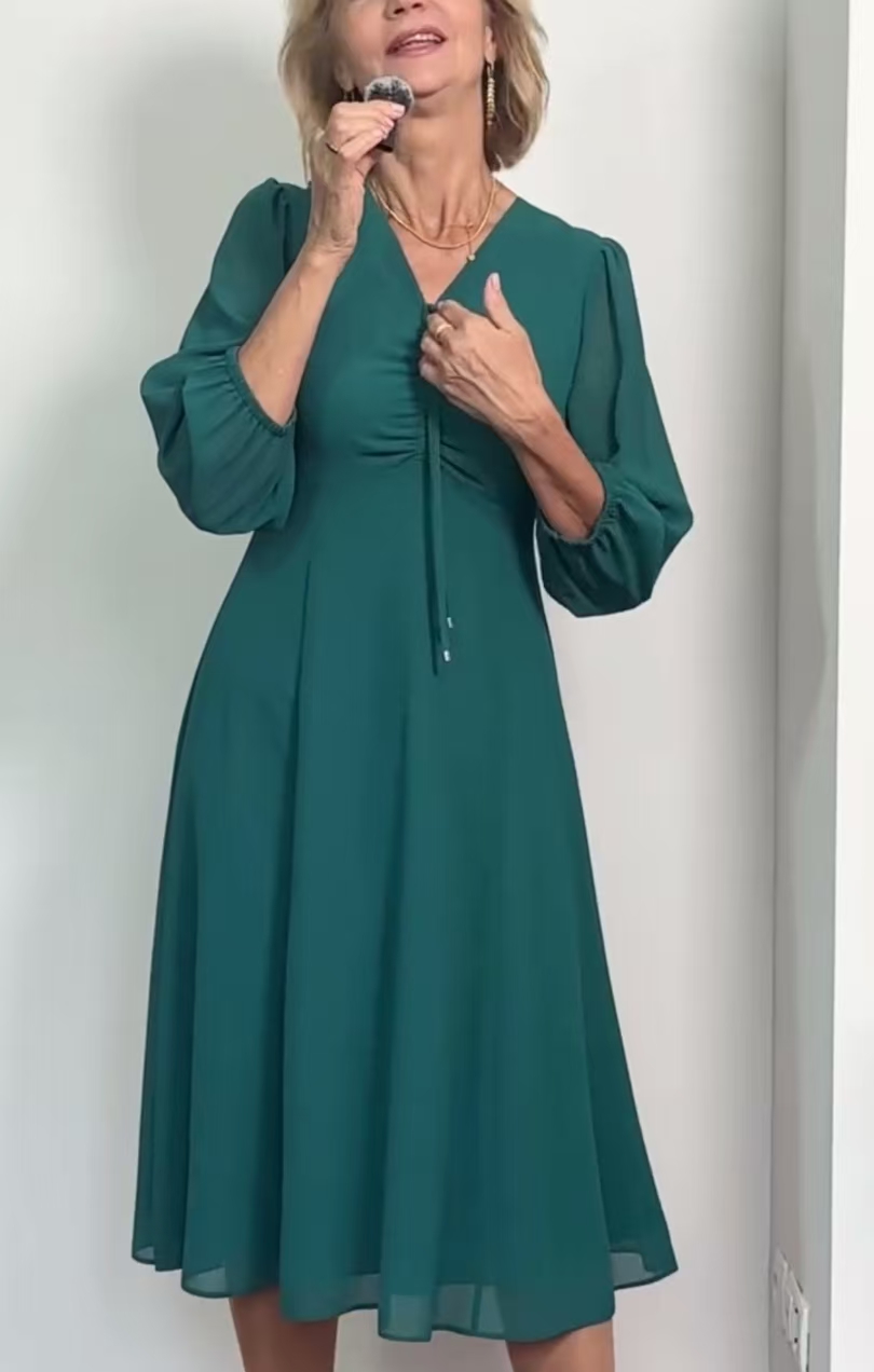 Tieto šaty sú ideálnou voľbou pre ženy, ktoré si cenia štýl a pohodlie. Jeho materiál je mäkký a príjemný a poskytuje dokonalý zážitok z nosenia. Štýlový dizajn s akcentom na hrudi a pekné rukávy mu dodávajú charakter. Šaty sú ideálne na každodenné stretnutia aj večerné udalosti, pretože zaručujú voľnosť pohybu a elegantný vzhľad. Je to univerzálny kus oblečenia, v ktorom sa budete cítiť výnimočne.