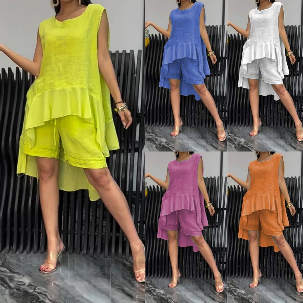 LOOSE SHORTS, STYLISH AND CONVENIENT – Paired with loose, matching shorts in the same color palette, these garments are made from soft, skin-friendly fabric that offers comfort and coverage.
