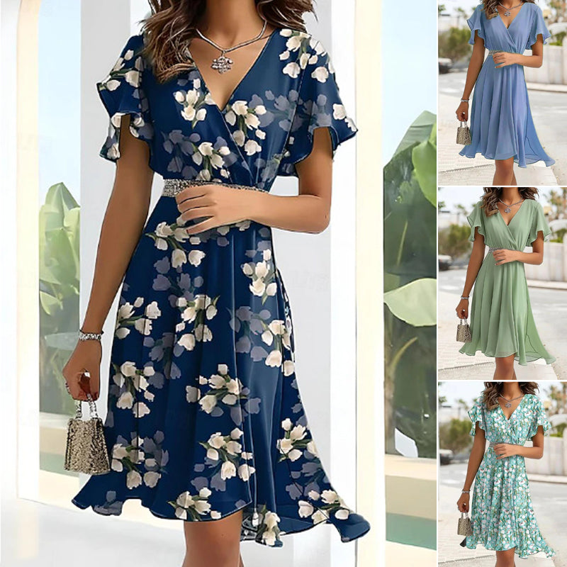 Wibrujący kwiatowy wzór, trwały - sukienka ma orzeźwiający kwiatowy wzór, a materiał wysokiej jakości jest pomarszczony i zachowuje swój kształt po umyciu. Zaslytrowany kwiatowy wzór pozostaje świeży przez cały rok, więc nie ma potrzeby prasowania ani specjalnej opieki.