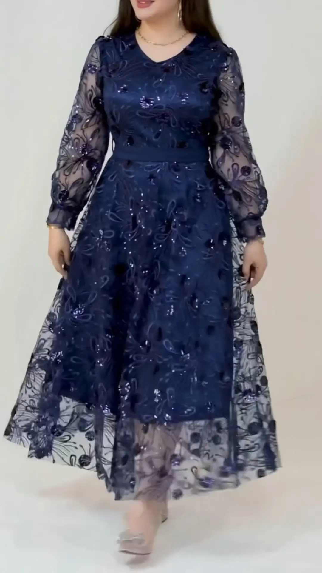 Women's elegant embroidered mesh dress